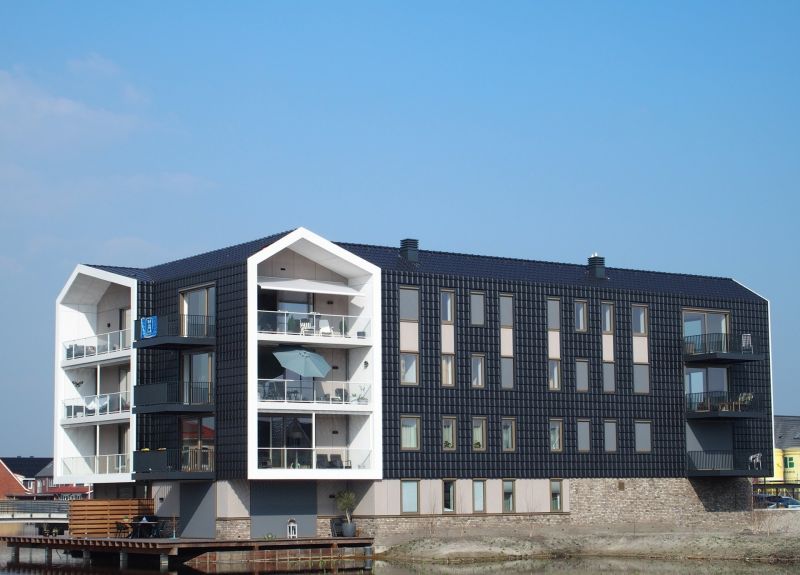 Product Benefits Pressed interlocking roofing tile in compliance with DIN/EN 1304 with much better quality characteristics than stipulated Large flat roofing tile with a low unit weight of approx. 4.6 kg, approx. 8.4 - 9.2 tiles per sqm Extreme frost resistance due to low water absorption (under 3%) Displacement clearance (height overlap) 35 mm Easy handling Modern, unobtrusive appearance Colours & Surfaces old black, engobed anthracite grey, engobed red, engobed black, gloss engobed (glazed) matt black, engobed Colour deviations are possible due to different monitor settings. Gallery f8 objekt 01 f8 objekt 02 F 8 5 zwart engobe 1 F 8 5 zwart engobe 3 Technical Data Total width 34.4 cm Total length 49.9 cm Average tilling width 29.7 cm Average tilling length 37.0 - 40.5 cm Tiles required per sqm 8.4 - 9.2 pcs. (depending on batten dimension) Weight per tile 4.6 kg Weight per sqm min. 38.6 kg (depending on batten dimension) Standard roof pitch 22° All dimensions are approximate. Tolerances in compliance with DIN EN 1304. Subject to change without notice.